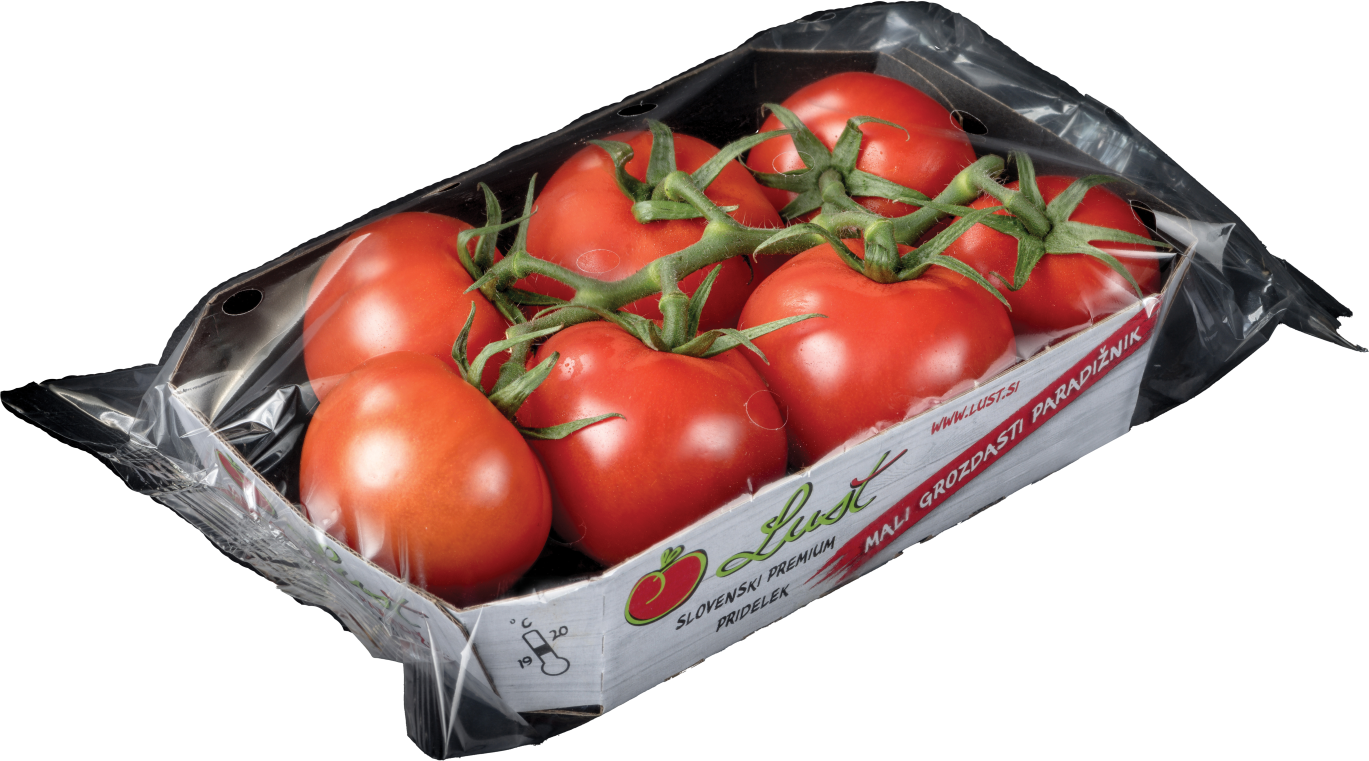 Grozdasti paradižnik Lušt razpolovimo ter stresemo v pekač. Dodamo sol, baziliko, oljčno olje in sladkor. Premešamo in postavimo v predhodno segreto pečico in pečemo 15 minut pri 210 °C, nato zmanjšamo temperaturo pečice na 160 °C in pečemo še 40 minut.